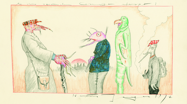 Heino Jaeger Retroperspektive, oder wie man das nennt vom 5. März bis 6. Juni 2022 Heino Jaeger (1938–1997) war ein genauer Beobachter seiner Umgebung. Seine Zeichnungen, Gemälde und Grafiken entstanden in einem realistischen Stil, sind aber häufig überspitzte Darstellungen. So gehören zu seinem Oeuvre naturgetreue Schilderung von Bahnhöfen und Caféhausszenen, aber auch Menschen mit Hummerköpfen und Landschaften mit Fantasiearchitekturen. Für Jaeger sind Ironie und Überzeichnung Bewältigungsmittel im Umgang mit dem Nachkriegsdeutschland. Seine oft skurrilen Werke loten die Abgründe seiner Mitmenschen aus. Aber Jaeger nimmt seine Kunst nicht zu ernst, er hat Freude an Provokation, an humoristischer Verzerrung – und schlichtweg am Zeichnen. Im Kunsthaus sind mehr als 300 Arbeiten zu sehen, die unterschiedliche Möglichkeiten bieten, sich mit dem Werk auseinanderzusetzen. Neben der Frage wie dreidimensionaler Raum auf eine Fläche gebracht wird, finden sich verschiedene Vorgehensweisen Menschen darzustellen und zu charakterisieren. |